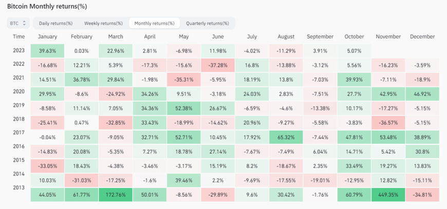 With October now underway, Bitcoin has posted its first positively returning September in 6 years at 3.91% month over month. The table below from Coinglass shows Bitcoin’s returns by month. With the worst month on average now behind us, looking ahead to the final 3 months of the year, seasonality is clearly on the side of bulls.