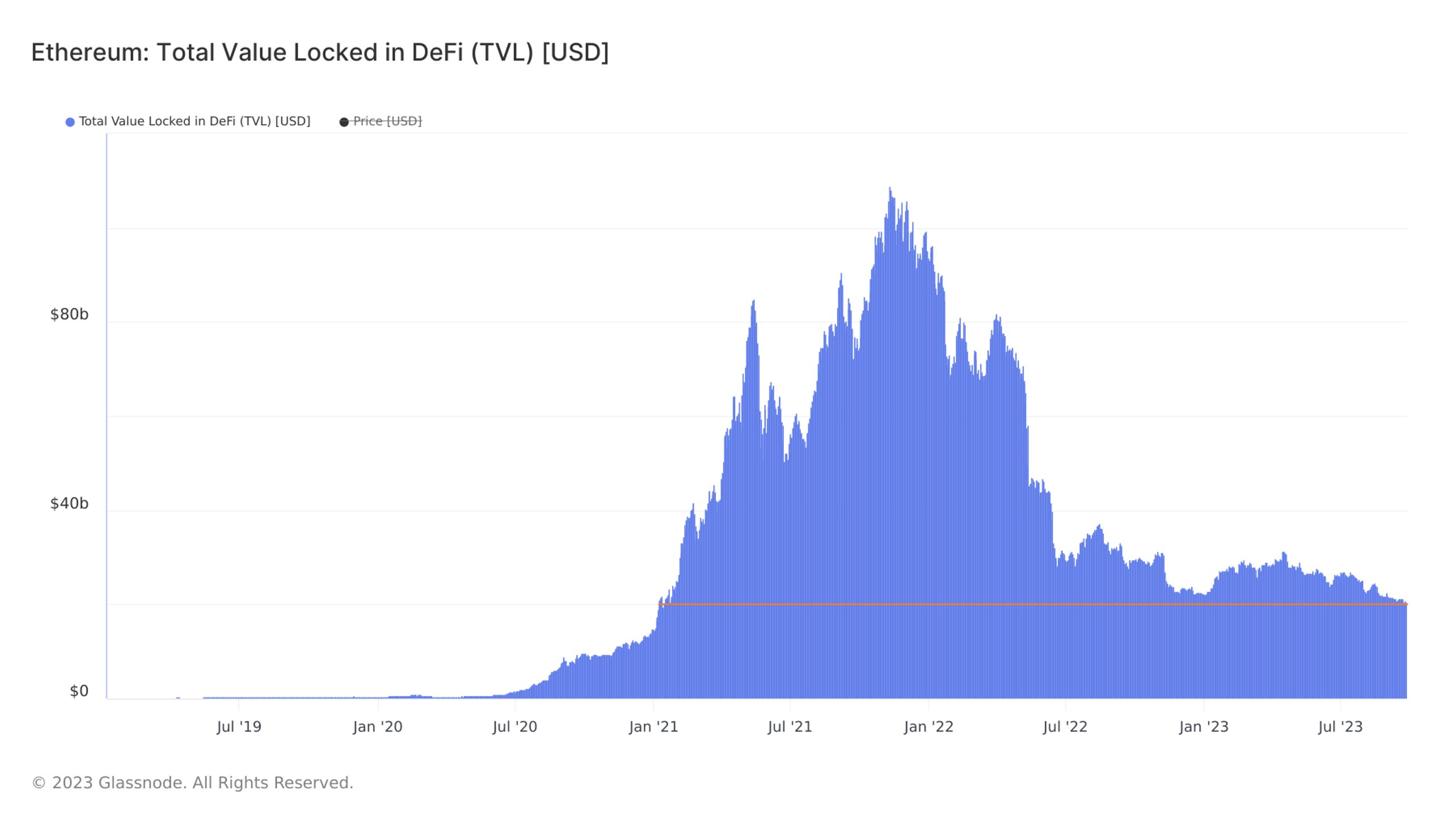 DeFi TVL on Ethereum reaches lowest level since January 2021